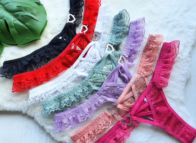 Tanga fio regulável confeccionada em tule, com o fundinho forrado em algodão, com pingente de cereja revestido em metal dourado na parte de trás.