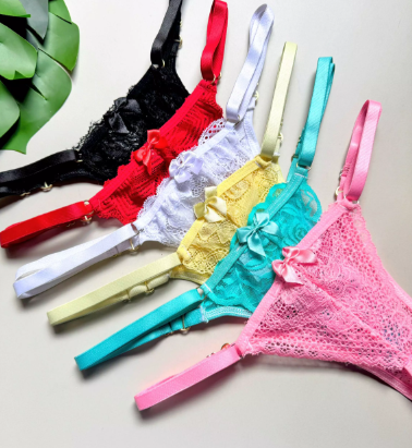 Tanga confeccionada em renda, com alça de regulagem de coração em metal dourado e fundo forrado em algodão.